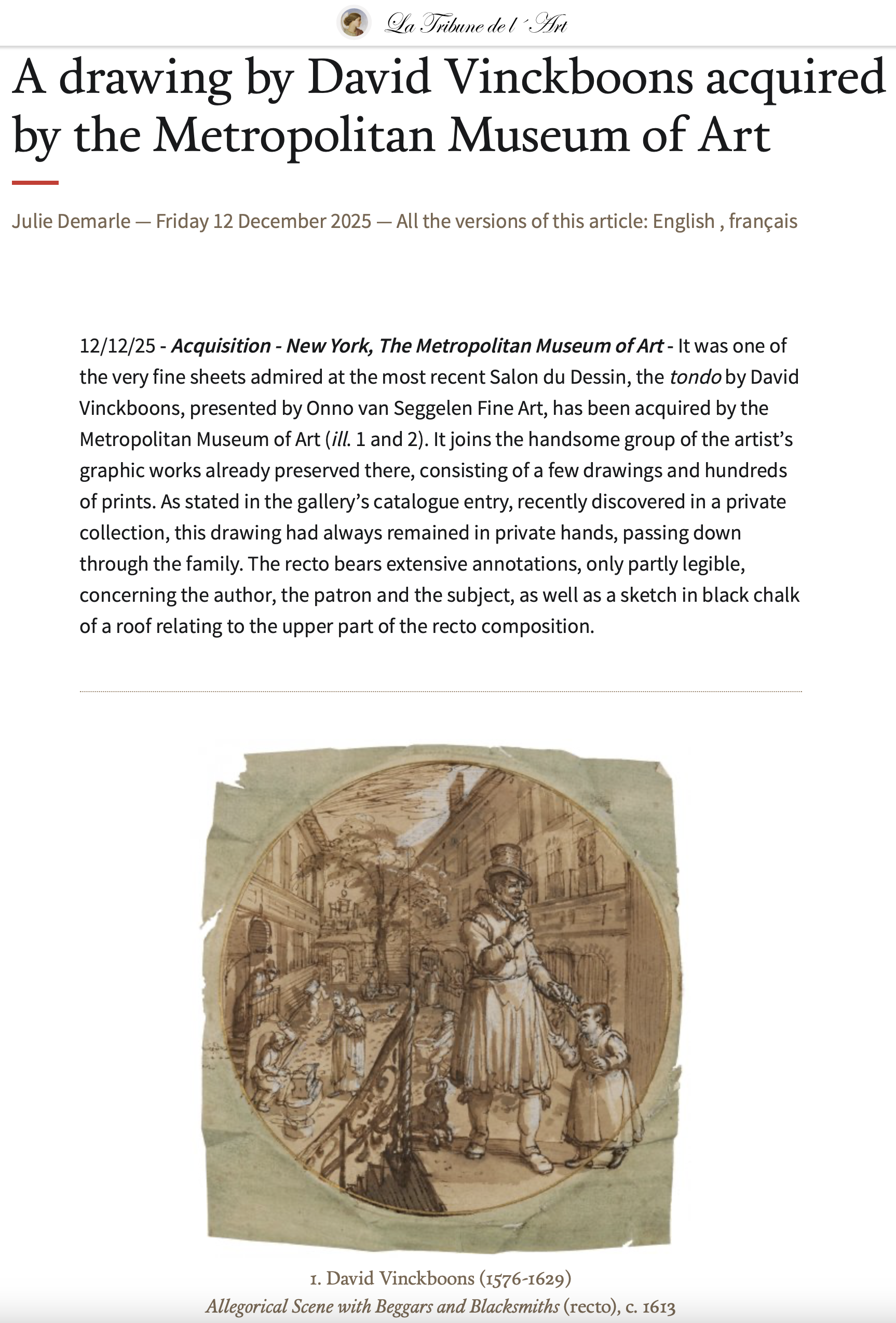 A drawing by David Vinckboons acquired by the Metropolitan Museum of Art