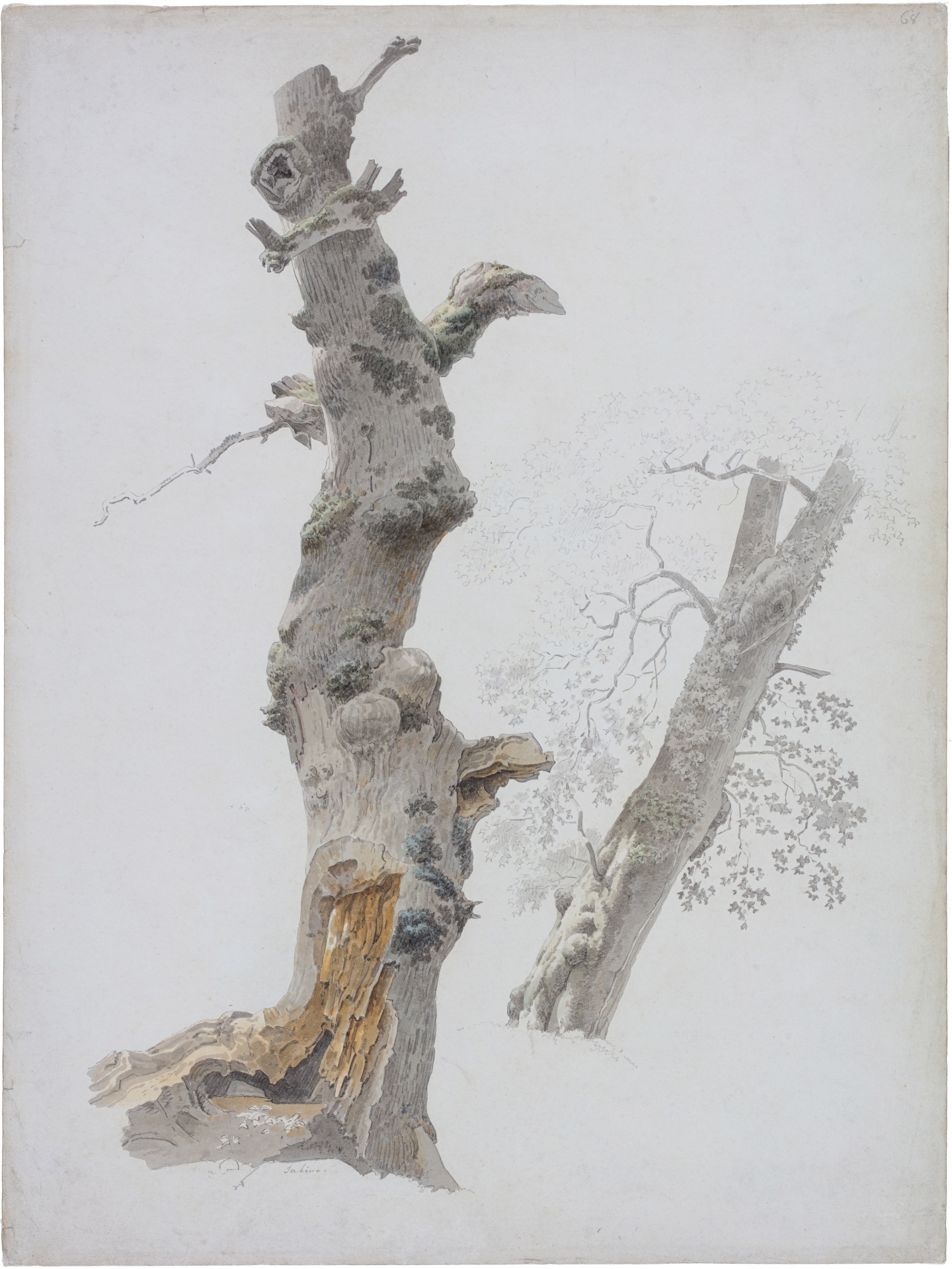 This full-size portfolio sheet shows the dead tree which Knip used for the idealized Neoclassical painting acquired in 1869 by Museum Boijmans van Beuningen.[7]